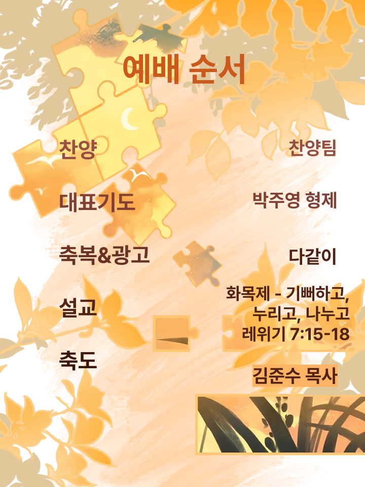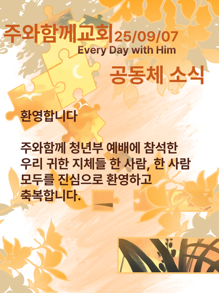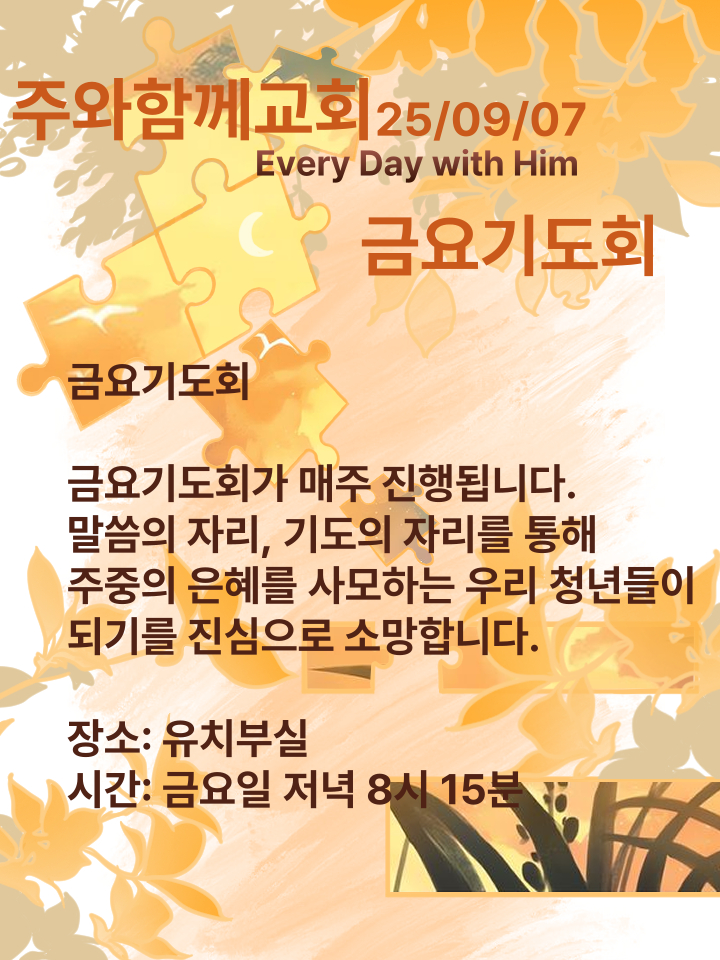 * 다음주 (9/14) 대표기도 : 김영광 형제